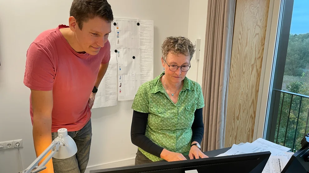 For Gitte Dalsborg Madsen og Mads Skovgaard Stoubæk er det spændende at arbejde med de nye telemedicinske tilbud. De peger på, at Helsingør Kommune har været på forkant ved at ansætte to sygeplejersker til specifikt at arbejde med telemedicin.