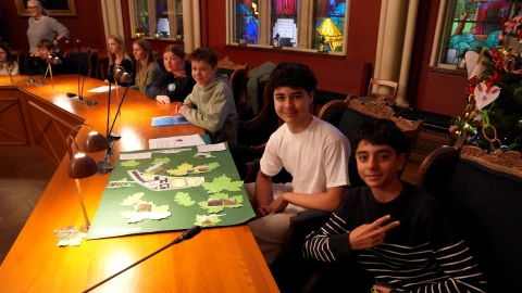 Det er elever fra 4. klasse og 5. klasse på de tre skoler, der har søgt Ungeklimarådet om tilskud fra klimapuljen til at gøre deres skoler lidt mere klimavenlige. Eleverne bag de tre bedste forslag, der fik penge fra puljen, var inviteret til rådhuset for at få overrakt en kæmpecheck. Det var en flok stolte og ivrige elever fra Skolen ved Gurrevej, der nu har 12.500 kroner til at plante frugttræer.