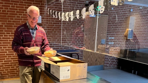 Henrik løser mange opgaver som frivillig på Hornbæk Skole. Fx hjælper han af og til med madordningen.