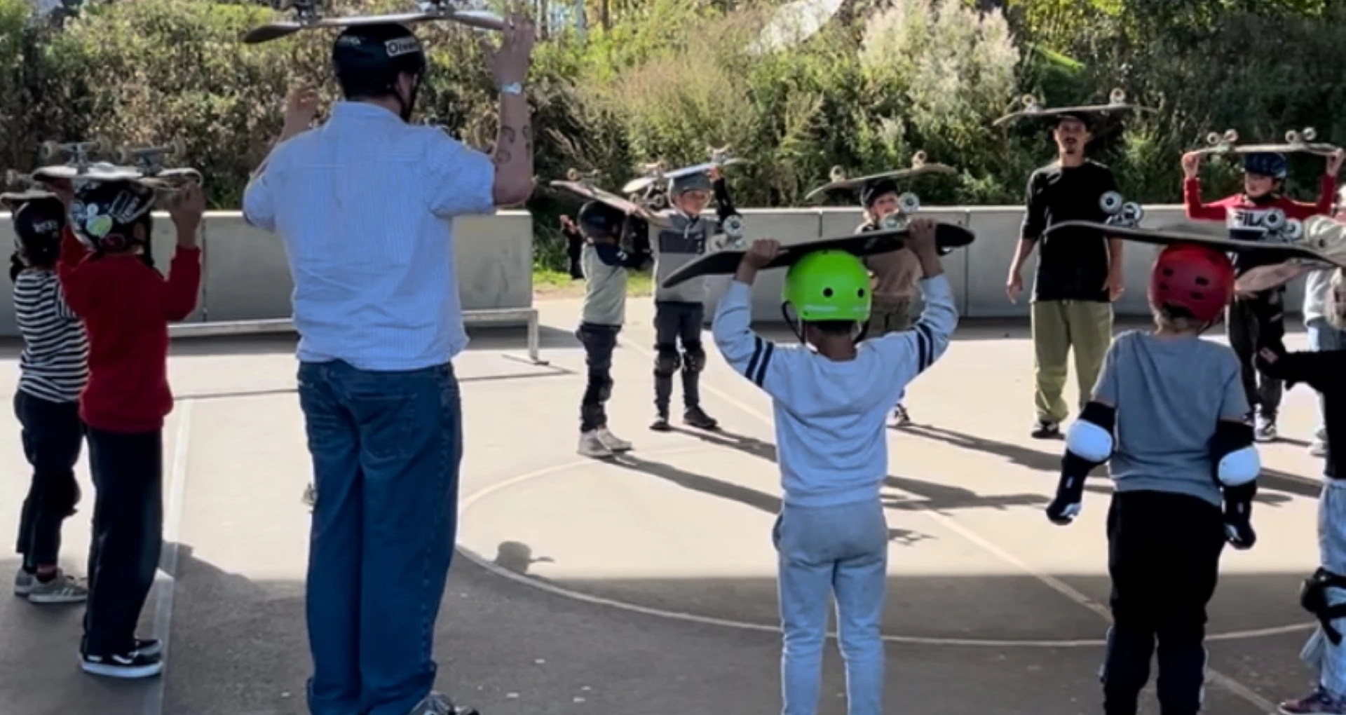 Den professionelle skater, Diego Fioriese var instruktør, men som de to skatere Damian og Linus også kunne fortælle, var der bare god stemning i Multiparken, fordi de store børn altid er søde og hjælper de mindre.