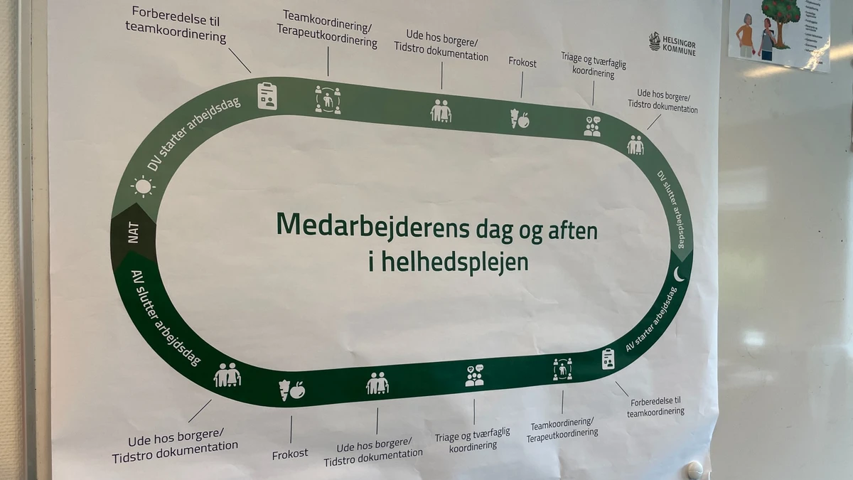 - Som noget nyt mødes hele teamet til et morgenmøde. En møder ind kl. syv og danner sig et overblik, og resten møder kl. halv otte, hvor medarbejderne taler dagen igennem. Er der fx sygdom blandt medarbejderne, som skal dækkes ind? Er der borgere, som skal have særlig opmærksomhed, fx fordi de er blevet dårligere?