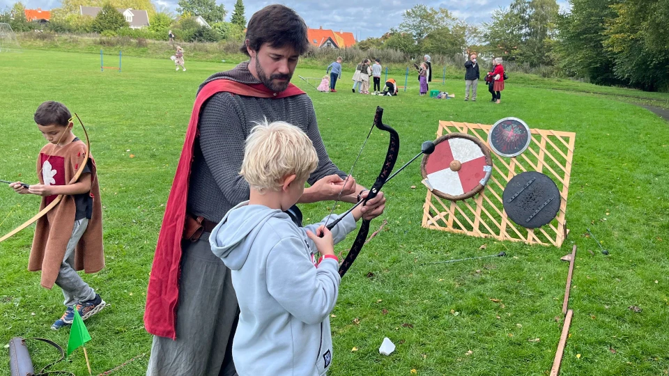 Middelalderdagen blev afviklet første gang sidste år, hvor mange børn var med i forberedelserne. I år er alle rekvisitterne blevet suppleret op, så alt var klar til en aktiv eftermiddag med ringridning, krostue, kamparena, kæphesteløb, gøglerier og mulighed for foto i både kongesal og gabestok.