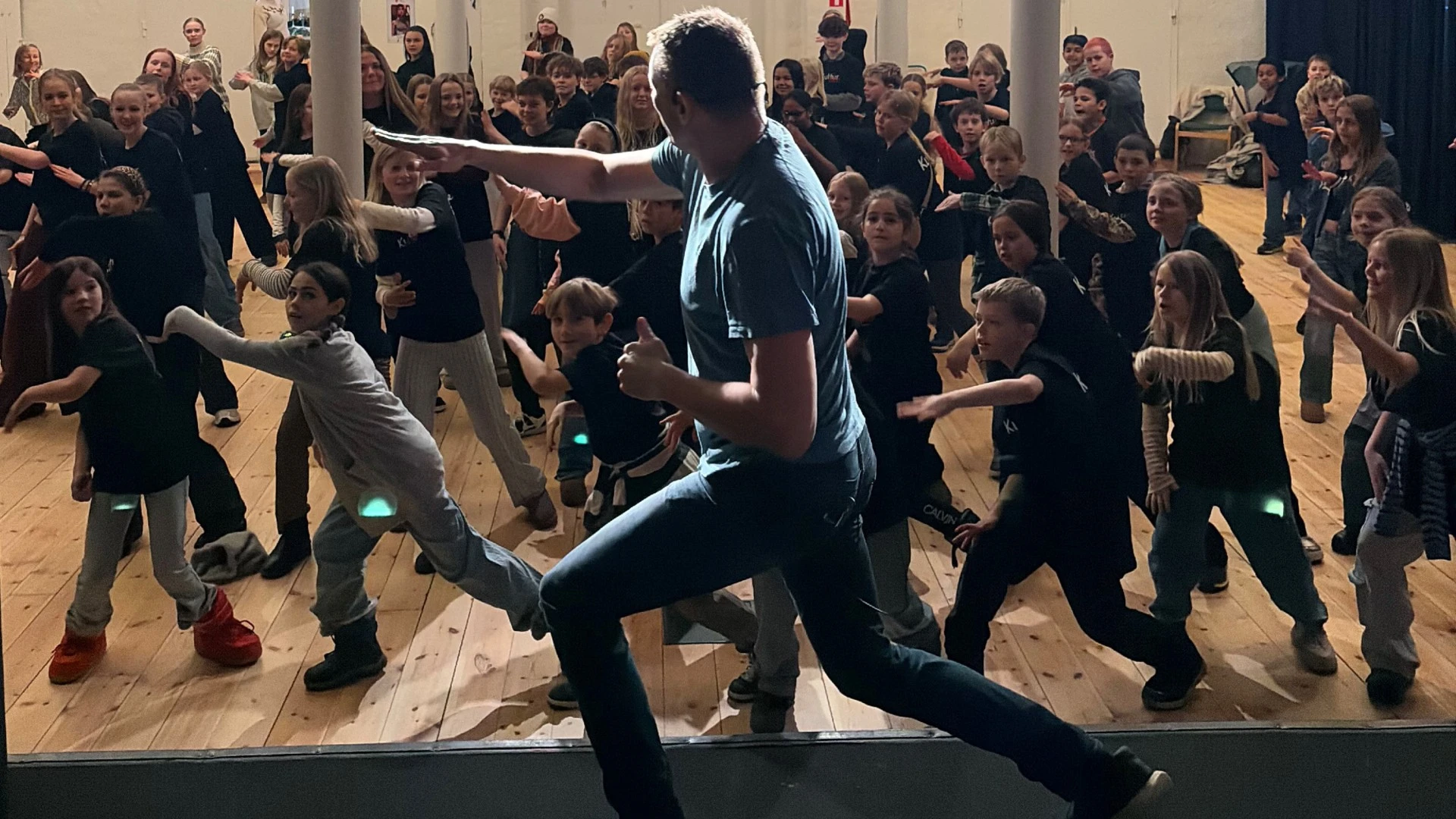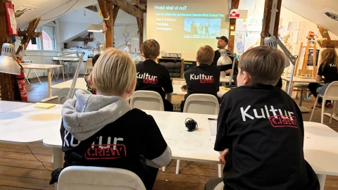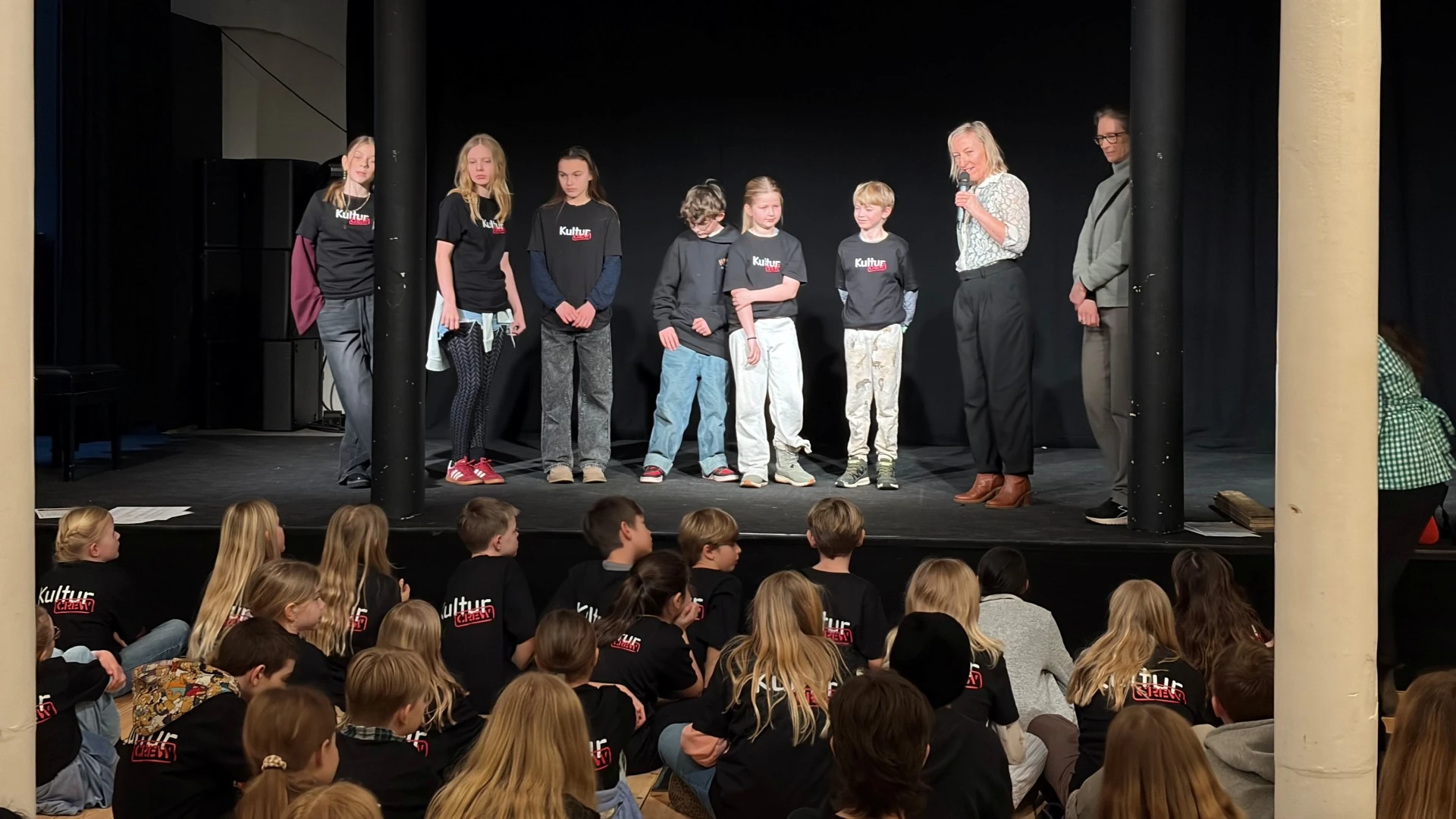 Det er vildt fedt at være med, fortalte Nora fra 6. klasse på Mørdrupskolen. Hun blev interviewet på scenen i Toldkammeret sammen med fem andre, da alle kommunens KulturCrew-børn var samlet til en fælles workshopdag i Toldkammeret.