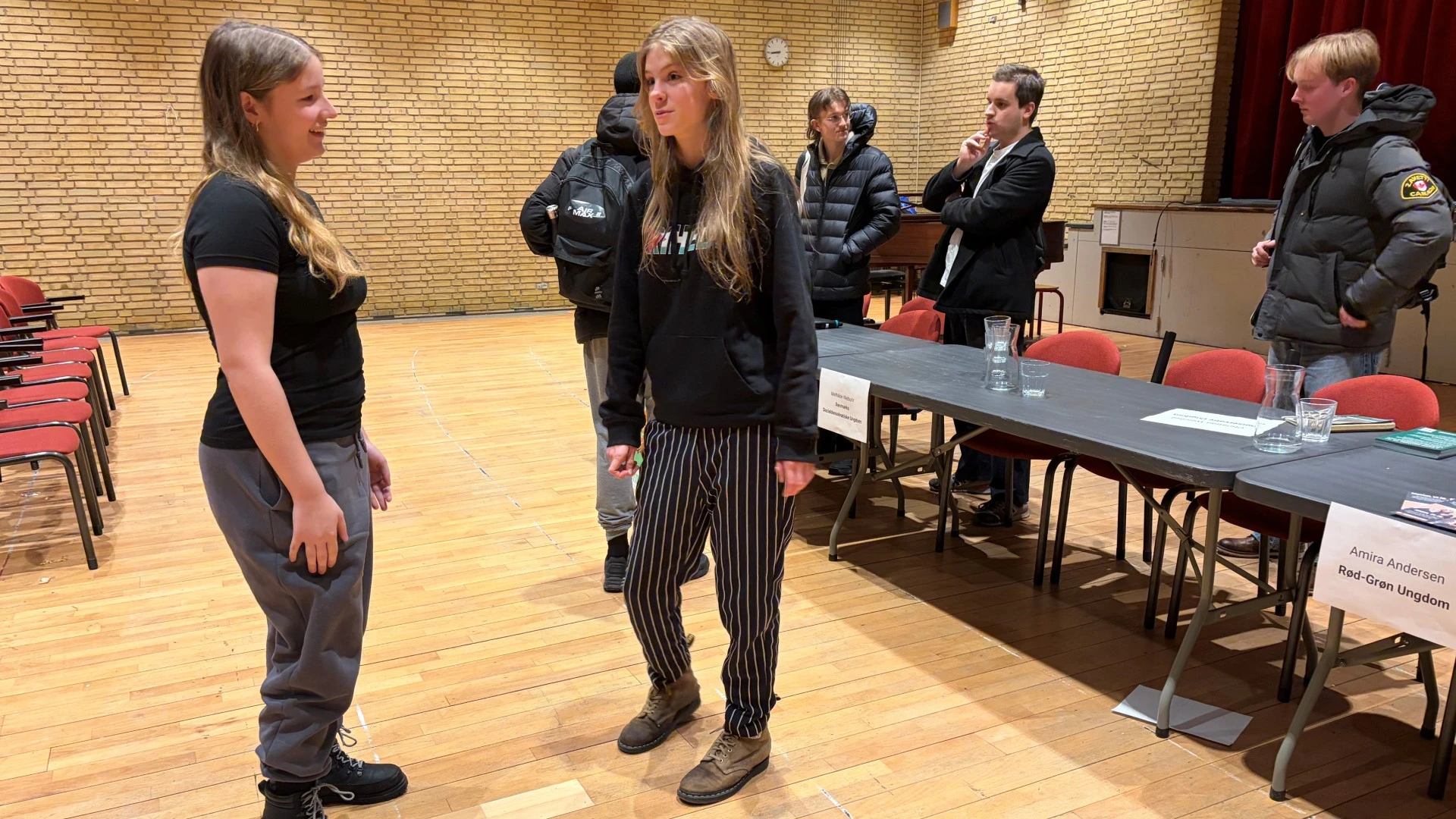 Eleverne fra Borupgårdskolen var myldret ind i Teatersalen for at lytte til en valgdebat i anledning af Skolevalg 2026. Et panel af ungdomspolitikere sad klar til at diskutere tre emner: kortere skoledage, gratis tog og busser og hårdere straffe for knivstikkeri.