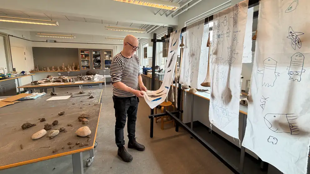 ”Det handler om at eksperimentere og lege med materialerne, skabe relationer til naturen og værdsætte verden omkring os,” forklarer Rune Fjord, mens han viser rundt i lokalet.