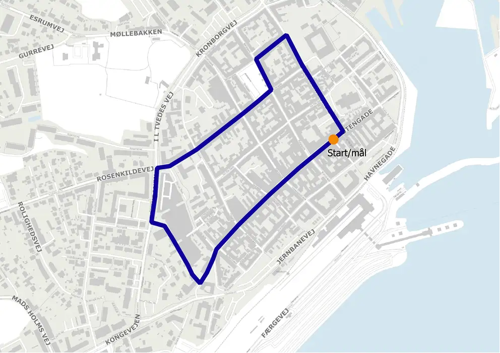 Fra naturskønne omgivelser i Gurre, stemningsfyldte gader i bymidten til boligområder og rå industri. Hvis du går eller løber 26 ruter, mangler du kun 400 meter for at have løbet et helt maraton! (42,195 km).